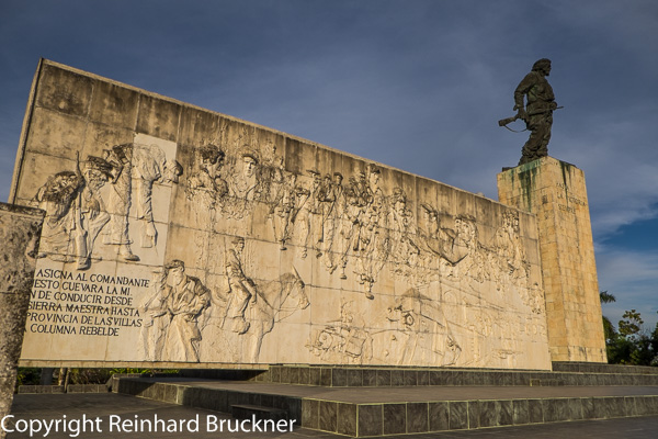 Nach der Mittagspause fahren wir wieder zur Autobahn und weiter nach Santa Clara. Dort besichtigen wir das Monument von Che (Ernesto) Guevara, das zugehörige Museum, das viele interessante Details zeigt und dürfen dann auch in das Mausoleum, in dem die Gebeine Che Guevaras und einiger seiner Companeros gelagert sind, seit sie 1992 in Argentinien gefunden wurden .