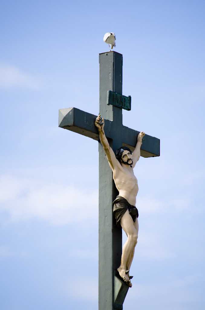 Vier führerlose Kabinen laufen parallel den Berg hinauf und hinab und verschwinden in einer Art Höhle. Bei Bedarf kann man eine Kabine rufen, indem man auf einen entsprechenden Knopf drückt…wie beim Fahrstuhl im Hotel oder Kaufhaus. Es ist ein Fahrstuhl…und in den beiden äußeren Kabinen dürfen sogar Fahrräder befördert werden…und alles kostenlos. Wir besteigen die nächste Kabine und fahren nach oben, wie wir bald merken durch den Felsen hindurch, auf ein Plateau, wo eine große Christus-Statue am Kreuz über die beiden benachbarten Städte und ihre Strände wacht.