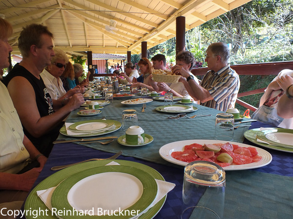 Als sich alle genügend abgekühlt und wieder umgezogen haben, geht es weiter und nach insgesamt etwa zweieinhalb Stunden erreichen wir das Ende des Wanderpfades, wo ein kleines Restaurant auf uns wartet. Zur Begrüßung gibt es einen Drink, dessen Namen ich bereits wieder vergessen habe und dann essen wir da zu Mittag.